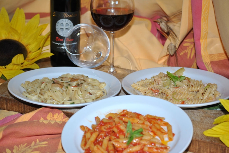 Il territorio Etneo, grazie al pedo-clima vulcanico, favorisce la produzione di eccellenti vini DOC (Rosso dell’Etna), di olii a Denominazione di Origine Protetta (Val Demone e Monte Etna), di frutti e superbe produzioni casearie, tra cui formaggi come il pecorino pepato, la provola e la ricotta a forno. Una terra generosa, che premia il lavoro rispettoso di chi come noi porta nel cuore i segreti della tradizione siciliana e li esprime e li tramanda da generazione in generazione, legati in particolar modo alla cultura Val Demone.
